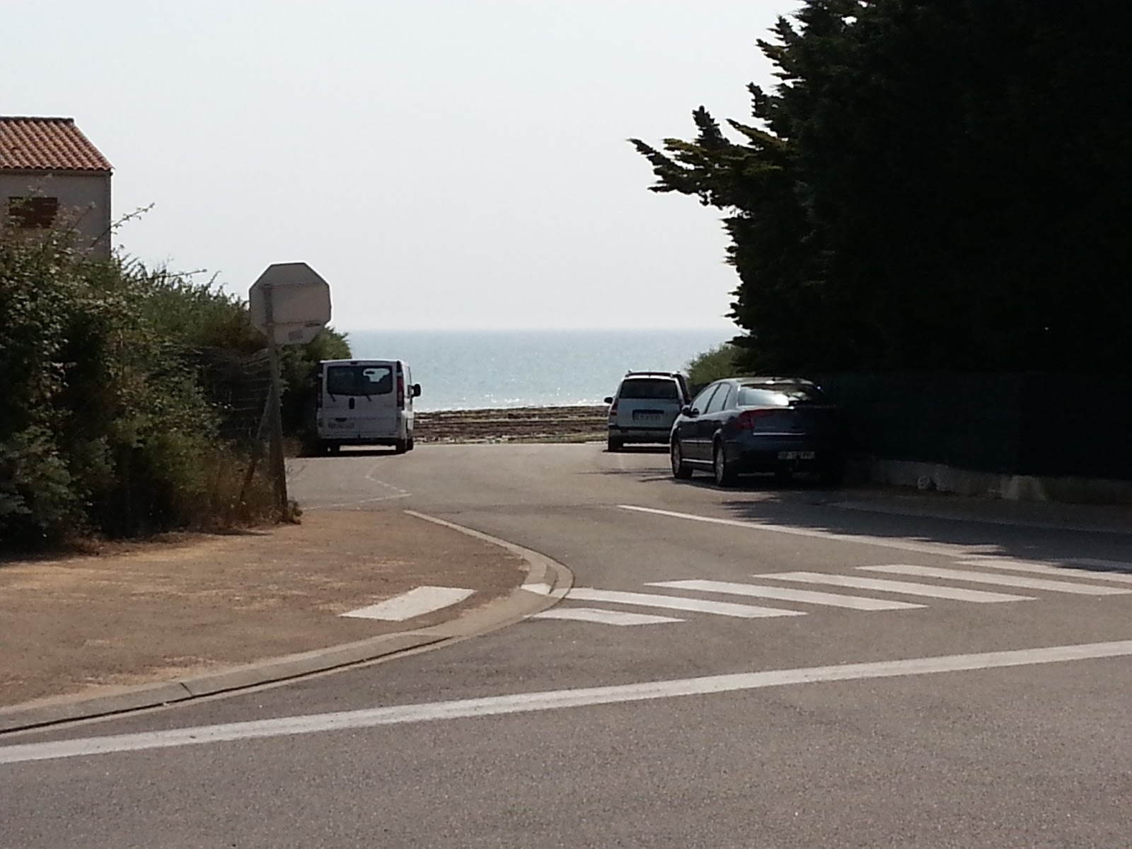 Vous arriverez à un rond point. La plage se trouve tout droit au bout de la rue. Sur la droite vous verrez le parking du port et le passage qui rejoint le moulin de Jard.